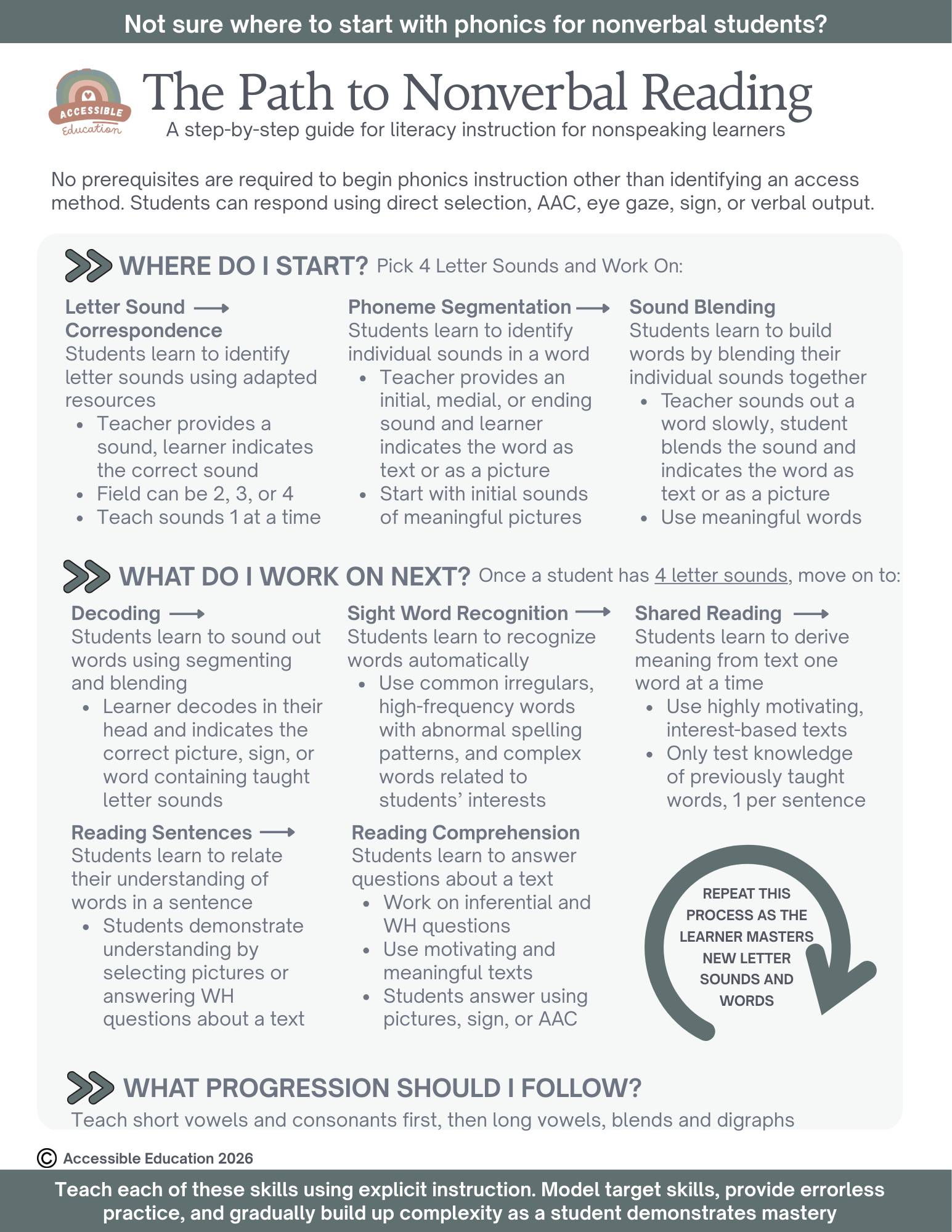 The guide is based on the recommendations of the National Reading Panel but incorporates accommodations for nonspeaking students to access instruction